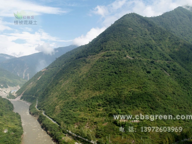 清江水布垭水电站公路边坡挂网喷播绿化--植被混凝����� �������Ƴ������������ �������Ƴ������������ �������Ƴ������������ �������Ƴ�������土护坡生态修复技术